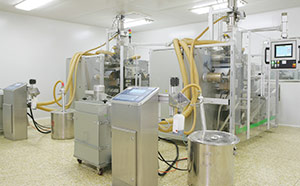 是一種將藥物提取細粉通過設(shè)備擠壓直接造粒技術(shù)。干法制粒生產(chǎn)過程不需用水,也就不存在干燥過程,可有效避免加熱干燥對藥物有效成分的分解破壞,產(chǎn)品療效也就更有保障。我公司擁有國內(nèi)最大的中藥顆粒劑干法制粒生產(chǎn)線,達到日產(chǎn)3T顆粒的生產(chǎn)能力。