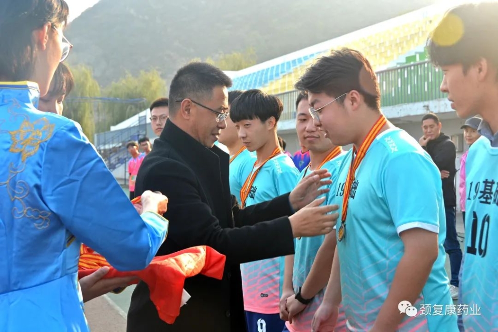 10月29日下午,由頸復(fù)康藥業(yè)集團(tuán)有限公司獨(dú)家冠名贊助的“頸復(fù)康杯”-承德醫(yī)學(xué)院第三屆冰雪運(yùn)動會暨首屆校園足球聯(lián)賽圓滿落幕。本屆校園足球聯(lián)賽自10月22日開幕,共8支球隊(duì)參加比賽,整個比賽歷時8天,每場比賽均由“頸復(fù)康”隊(duì)和“腰痛寧”隊(duì)進(jìn)行角逐,經(jīng)過十六場比賽的激烈爭奪,最終決出冠軍、亞軍、季軍。決賽于10月29日下午舉行,最終中醫(yī)系代表隊(duì)(“頸復(fù)康”隊(duì))獲得冠軍,生物醫(yī)學(xué)工程系代表隊(duì)(“腰痛寧”隊(duì))獲得亞軍,基礎(chǔ)醫(yī)學(xué)院代表隊(duì)獲得季軍。決賽后,本次大賽全明星代表又與教職工代表隊(duì)進(jìn)行了一場氣氛活躍,師生同場競技的友誼表演賽,為本次比賽畫上了圓滿句號。賽后在承德醫(yī)學(xué)院陽光體育場舉行了大賽頒獎儀式,承德醫(yī)學(xué)院校領(lǐng)導(dǎo)張凱等及頸復(fù)康藥業(yè)市場部經(jīng)理劉井利分別為獲獎隊(duì)伍頒發(fā)了獎杯及獎牌。
