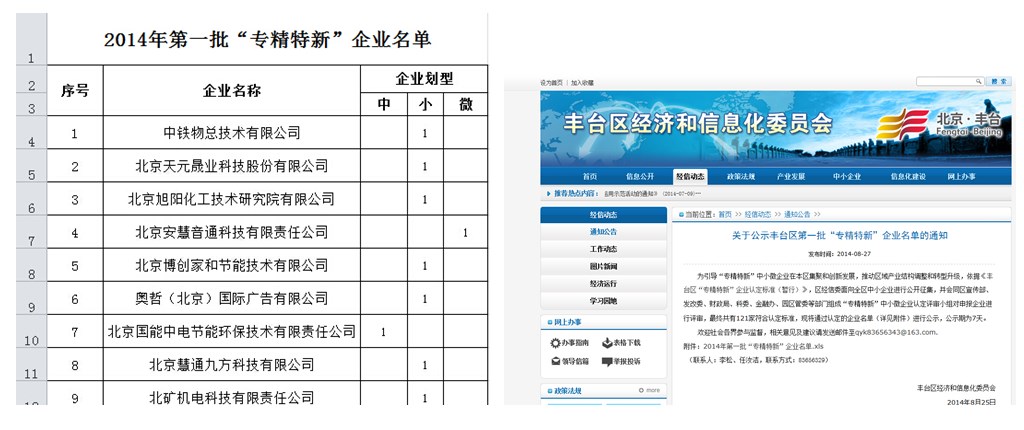 日前,我公司已通過豐臺區(qū)經(jīng)濟和信息化委員會認定,被評為 “專精特新”企業(yè)。
