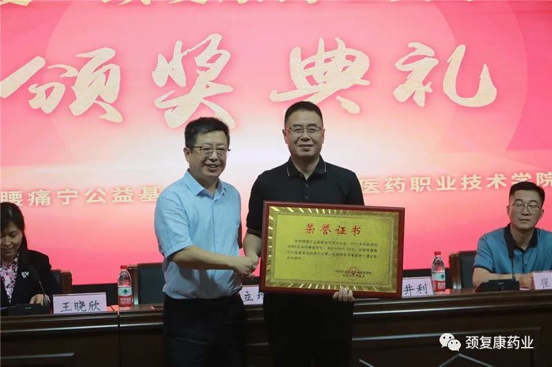 河北化工職業(yè)技術(shù)學(xué)院副院長李立曾、石家莊醫(yī)學(xué)高等專業(yè)學(xué)校副校長朱太平在各自學(xué)校的頒獎儀式上,分別對頸復(fù)康藥業(yè)集團(tuán)及承德腰痛寧公益基金會多年來對學(xué)校人才培養(yǎng)工作的支持與慷慨捐贈表示衷心的感謝,對獲獎學(xué)生表示祝賀并提出了殷切希望。